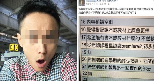 其實小編以前在大學時也會遇到兼任講師上課,只能說小編比較倒楣?這位老師一年下來每堂課至少遲到15分鐘,有一次期中考試的時候還遲到了30分鐘,全班都在等他來發考試卷,事後這名老師有沒有繼續兼任小編是不知道,但當時小編給他的教學回應確實滿差的。
