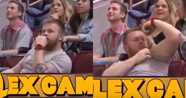 看比賽時,有時候會有「KISS CAM」,規則是攝影機照到兩個人,他們就必須給對方深情一吻,但是這個鏡頭卻是讓人出乎意料之外~~~