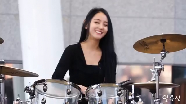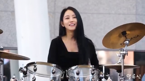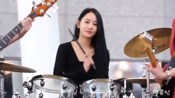 原來這位女鼓手名字叫做아연(A-YEON),是女子樂團Bebop(비밥)的成員,Bebop出道於2013年,一開始是個雙人組合,成員有A-Yeon 以及 JuWoo,直到2014年有新成員JiIn加入,才改以樂團形式重新出發。
