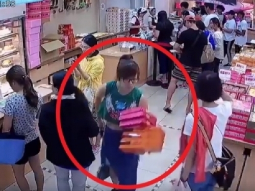 在短短不到一分半的時間內,女子就這樣拿走了7盒餅,隨後第二次進來又拿走了2到3盒餅,整個過程真的是讓人看了超誇張,真的不知道這名女子是忘了付錢,還是故意這樣做的!