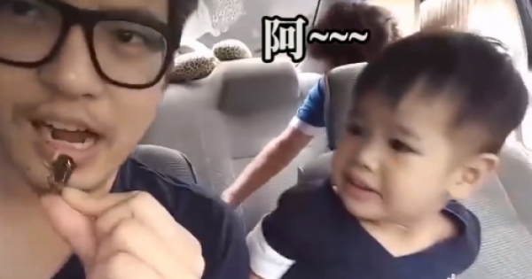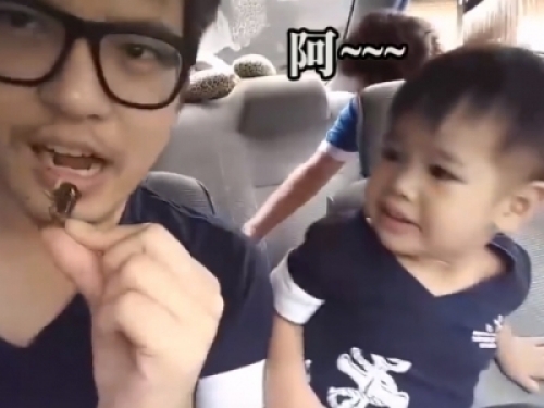 還有下面這個老爸也是,明明知道自己的兒子不喜歡蟋蟀,還故意在他面前表演吃蟋蟀!結果兒子被嚇到一個花容失色,最後甚至...網友大笑:這老爸回家應該會被揍吧!