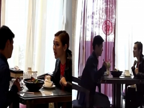 男子原本在餐廳吃飯,結果突然有位女子衝忙得跑進來,還直接坐到他的對面,究竟是發生什麼事呢??