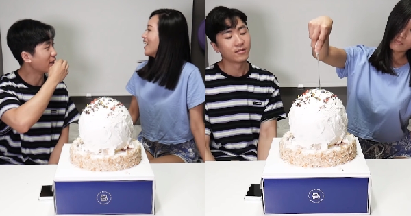 弟弟好心準備「恐龍蛋蛋糕」當作驚喜,沒想到姐姐才一刀下去,頓時之間就後悔了......
