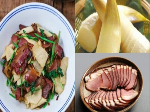 4、然後將臘肉盛出來下冬筍進行翻炒,稍微的加上一點的食鹽,看炒得差不多快要熟了,將臘肉再次倒入鍋中,混合進行翻炒,讓味道相互融合在一起,菜品就算是製作完成了。