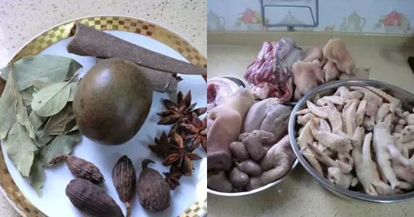 八角、香葉、草果、花椒、辣椒、老薑、自家鹵一袋、白糖、鹽、油;