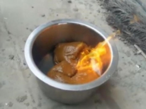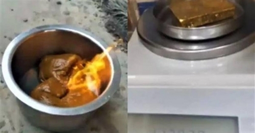 於是他馬上叫住男子,把男子這包排泄物拿火一燒,想不到竟燒出了黃金來!!
