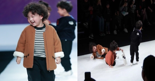 超萌小男模一摔成名! 走秀被撞倒後用這招化解尷尬~