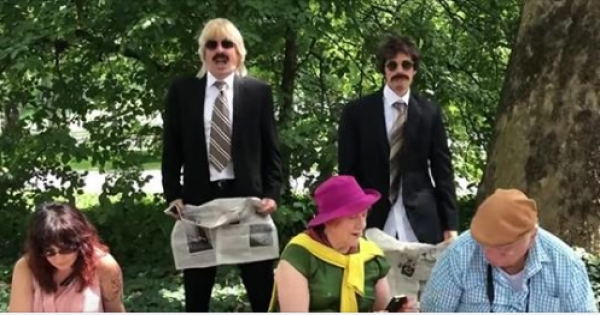 2位西裝男在中央公園掀起一陣騷動,雖說不知道兩人是何方神聖,但他們逗趣又爆笑的舉動引起越來越多人注意,還有人找他們合照。