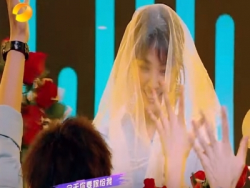 到了歌曲快結束時,喜歡蔡依林的粉絲集體送上花束,更還撒上玫瑰花瓣,現場氣氛相當浪漫,而且男生還下跪上演向蔡依林求婚的橋段,接著其他人幫蔡依林披上白紗,給了蔡依林最浪漫完美的驚喜。