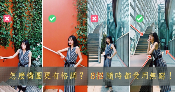 很多人面對鏡頭總是放不開,不敢擺動作,其實先學會構圖法,即使還是生硬的不太會擺姿勢,照片也不會差到哪裡去喔~現在就教大家平時最常用的8種簡單又上手的構圖訣竅,學會之後怎麼拍都美!還能成為朋友裡面的小知識王呢!