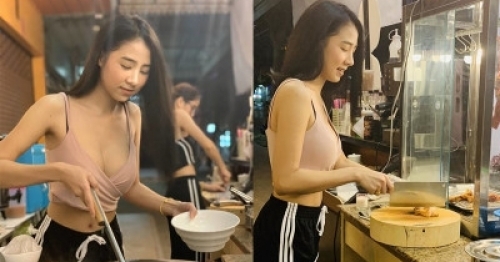 近日在臉書瘋傳,有網友在泰國曼谷街頭,發現面貌90分、身材滿分的「麵攤老闆娘」