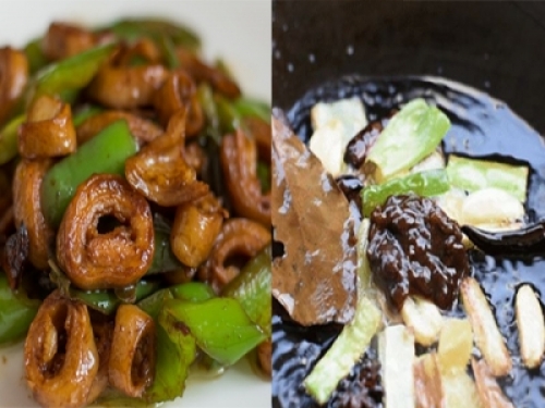 ▶這裡所謂的翻炒均勻,真的就是翻炒均勻,因為肥腸是熟的,只要裹上調料就可以了。