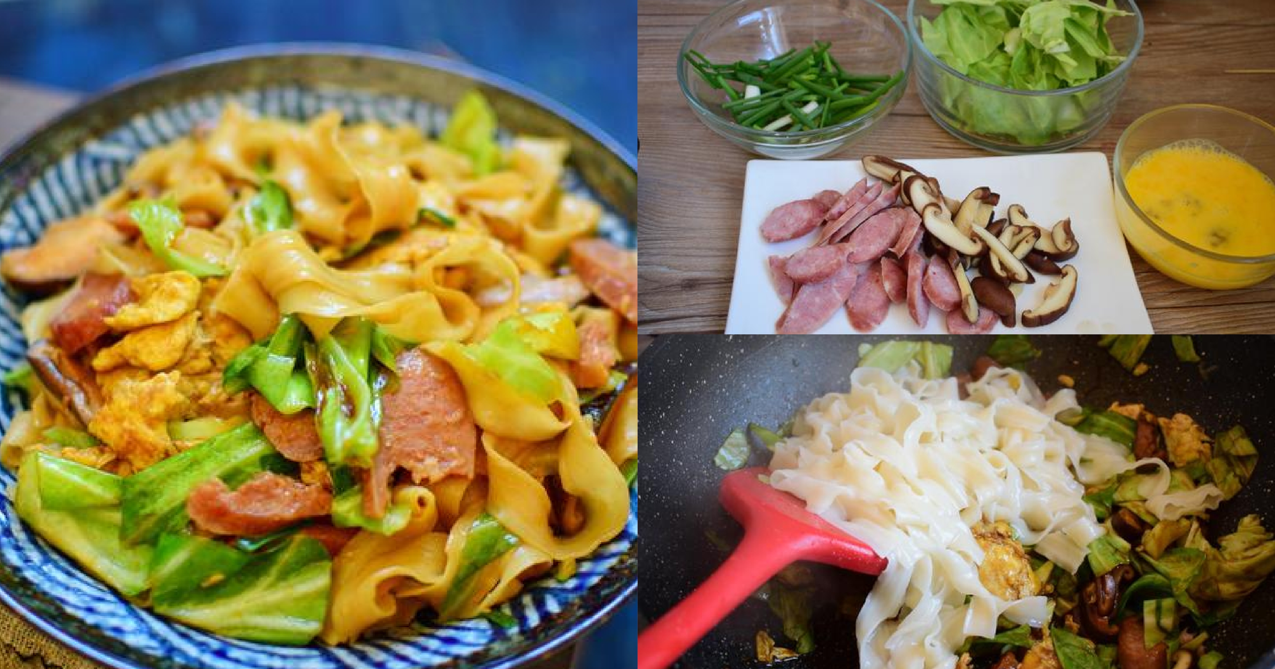 家裡有什麼食材,就用什麼食材,方便美味還正好夠我自己一個人吃,還不浪費!雞蛋、腸、青菜、蘑菇,通通都可以炒麵吃!炒這麼一份,能把自己吃到撐,做少了根本不夠我一個人吃!有的人喜歡吃炒細麵,我就喜歡炒這種扁的寬麵,吃一口特別過癮。