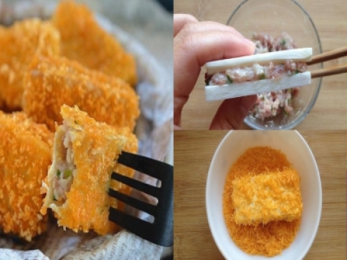 杏鮑菇的吃法也非常多,可以炒、做湯、干煸、涼拌等等,不過,今天我的這種做法可能並不常見,也是杏鮑菇的心吃法。並且做法也特別簡單,把杏鮑菇切成片後釀入調味好的肉餡,再裹上麵包糠炸熟就完成。吃起來外酥里嫩香味四溢,真的是別有一番風味,特別好吃,尤其是孩子非常喜歡,剛一上桌就連吃好幾塊。