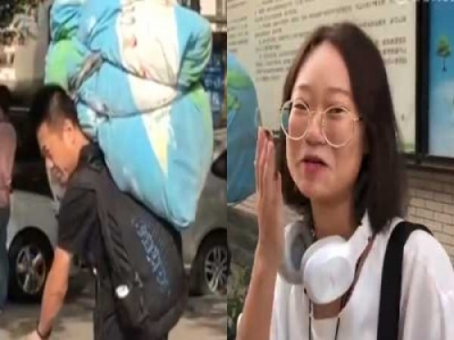 這位住在黑龍江的爸爸,因為女兒考上了西安的大學,捨不得女兒離家這麼遠,於是他就自己扛著家裡親手給孩子做好的棉被,在沒有交通工具的幫忙下這麼一步一步的,給孩子扛到學校。