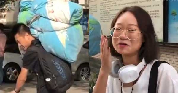 這背影看了會哭! 爸爸千里扛棉被送女兒上學 彎腰回:「一點也不重,還行吧!」