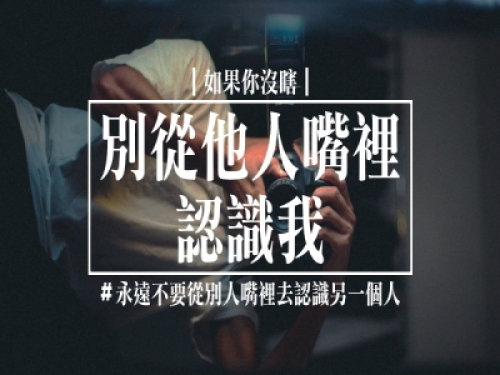 如果你沒瞎,就別從他人嘴裡認識我!這世界上除了你自己,沒有誰可以幫到你!