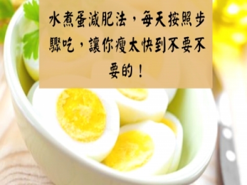 ※ 使用水煮蛋廋身建議將蛋蒸至全熟、延長吸收消化速度。