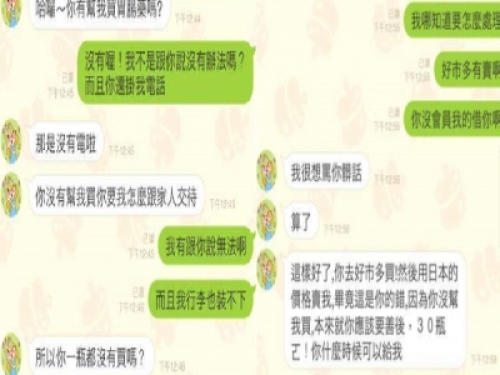 一位男網友在臉書上PO出了一段LINE的對話,一位他的朋友要求他從日本幫忙代買30罐腸胃藥回台灣,但是他拒絕,沒想到回國以後,不但被逼問,還講出非常過份的惡毒話語,真心覺得這朋友不要也罷!