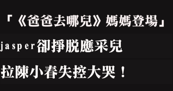 大家好,我是Ifunny趣味新聞小編eva!今天要來說說關於「「《爸爸去哪兒》媽媽登場」,jasper卻掙脫應采兒,拉陳小春失控大哭!」的事!不知道大家對於這個有多了解呢?一起來看看吧!