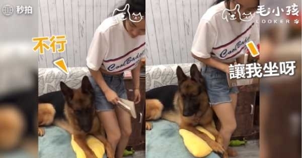 後來媽媽回來準備要坐下時,他更是直接用「狗身擋住」,