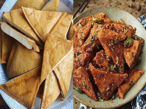 【做法】:1、把豆干對半切成三角形;