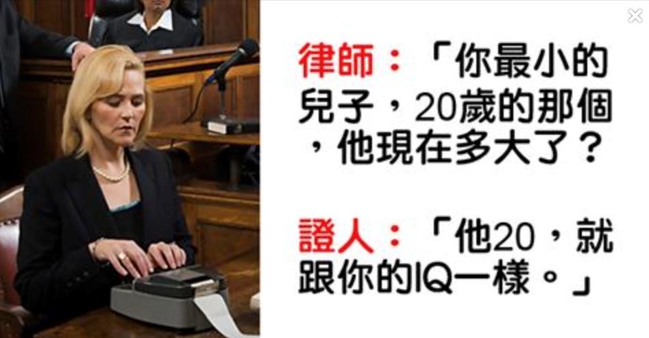 ▼3.律師:「你最小的兒子,20歲的那個,他現在多大了?」證人:「他20,就跟你的IQ一樣。」