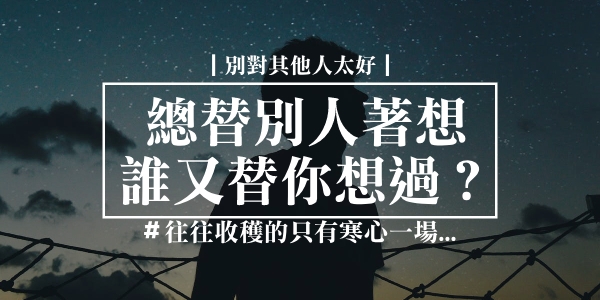 不要對別人太好!總是替別人著想,誰又替你著想過?