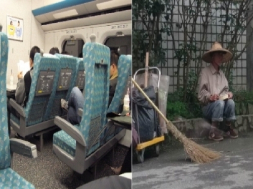 ▼這名同學也沒有發現原po,很專心的在工作,和在學校完全是兩個人,「跑了一個車廂,又去另一個」,只花了短短10分鐘便清潔了所有車廂,令原po深感佩服。