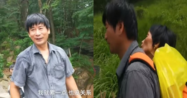 大陸安徽省57歲的王效民背著妻子余永花上山,一般人只需花3小時就能登頂的路程,他總共爬了12小時。因老婆4年前確診患有漸凍症後,經常以淚洗面,王效民除了陪伴在她身邊,也帶著她到外頭看看這個世界,他不懂什麼是愛情,也沒有那麼浪漫,但就是一家人,要陪她到生命最後。