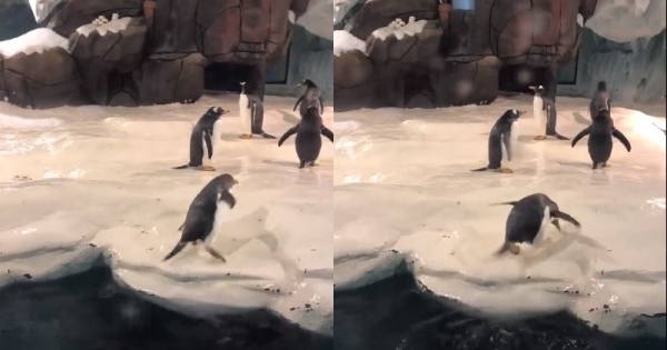 近日有名網友上傳一段短片,是到水族館參觀企鵝時意外錄下的有趣畫面~