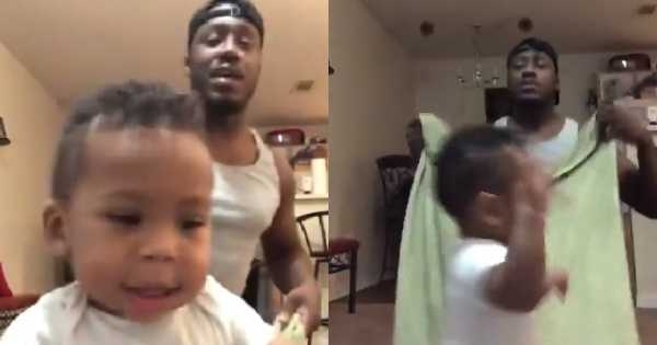 影片中Tim原本是想要教大家如何正確的折毛巾,但開始不到一分鐘,他一歲兒子Ayden就馬上跑出來把爸爸的手機搶走,後來好不容易把毛巾搶回來後,Ayden又馬上跑回來再次搗亂!讓爸爸整個超無奈!