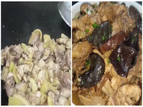 倒入適量生抽翻炒一下,然後再加適量清水沒過雞肉即可,蓋上鍋蓋,大火燒開,然後轉成中小火燜半個小時。