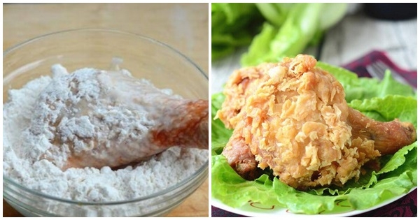 3.去凈腌好的雞翅或者雞腿表面的附著物,蘸勻麵粉(麵粉400克,脆炸粉100克,生粉50克,清水約100克混合均勻即可,也可以在此基礎上添加適量的鹽焗雞粉、辣椒麵或者孜然粉),放入清水中輕輕蘸一層水,再滾上一層麵粉