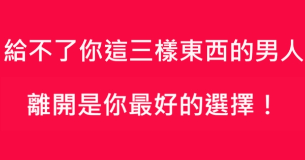 給不了你這三樣東西的男人,離開是你最好的選擇!!