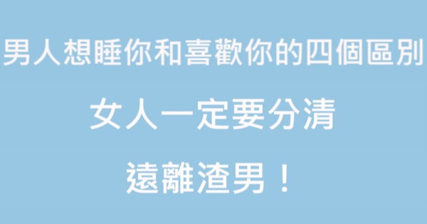 大家好,我是 CA 今天來跟你說說 男人想睡你和喜歡你的四個區別!女人一定要分清,遠離渣男!吧!讓我們來看看!