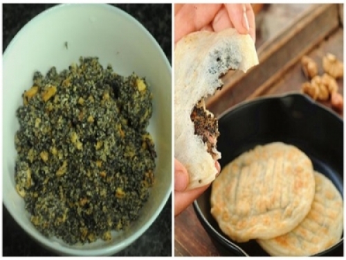 餡料:烤花生粉200克熟黑芝麻粉200克熟核桃仁200克,將處理好的堅果放入盆裡,加入50克白糖和30克植物油,混合均勻即成餡料,植物油一定要選無色無味的,比列不用完全一樣,只要餡料稍微有點濕潤,能捏成團即可。