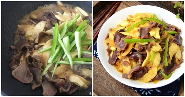 1.雞胗洗淨切成薄片,放少許鹽、料酒和胡椒粉醃製五分鐘。