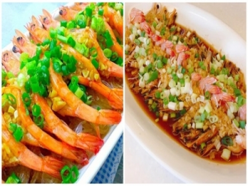 蝦、蒜末、薑末、青紅辣椒絲、蔥段。配料:油、鹽、、醬油、蠔油。