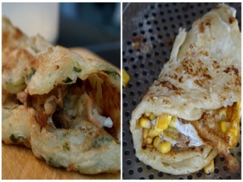 烙至兩面金黃即可出鍋,我們這管它叫油餅,非常的好吃,卷上自己喜歡的菜,簡直就是滿足!