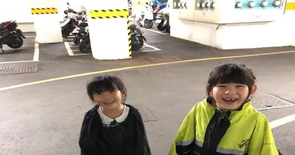 近日因受到熱帶性低氣壓影響,全台降下驟雨,兩件式雨衣是不少機車騎士的第一選擇,但只有一套雨衣的情況下,該如何替兩個女兒擋雨呢?靈光一閃,使出神招,成功守護兩名寶貝女兒,可愛又滑稽的畫面曝光笑翻一票網友!
