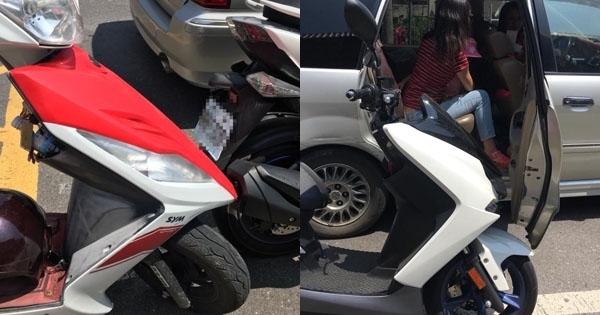男子說自己當時騎機車期的好好的,眼看前面是紅燈,所以要從車子的旁邊慢慢騎去前面,想不到這輛轎車的後方乘客就這樣突然開門,幸好他車速不快緊急煞車沒有撞上,但跟在他後面的機車騎士卻來不及反應,整個撞上他的車屁股!