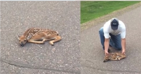 小鹿癱倒路中央「受重傷」!好心男子靠近救援抱起牠後,才發現了超靠杯的事實!
