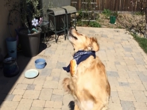 最天兵的呆萌黃金!主人拋什麼都漏接「狂被最愛的食物打臉」!網:幫QQ!吃不到都要哭哭惹~~