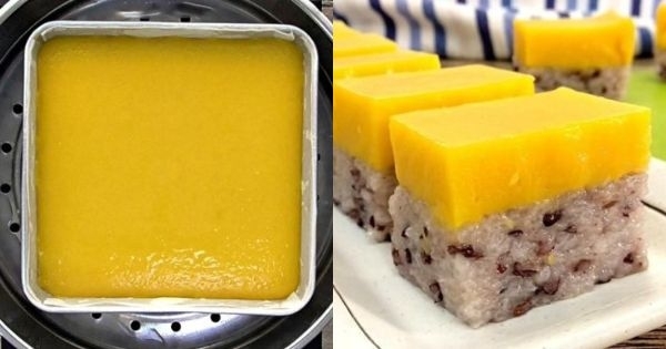 金瓜糯米糕和雙色香蘭糯米糕有些相似,底層都是以糯米飯為主。雙色糯米糕的上層有加入蛋,金瓜糯米糕的上層則是用金瓜來制作。由於是無蛋食譜,金瓜糯米糕適合素食者享用。