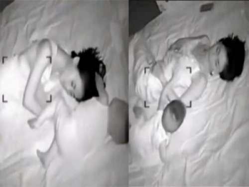 從監視器可以看出來,當時已經很晚了,媽媽可能白天沒有睡覺,已經很睏了,但是兒子卻很有精神,非要媽媽陪他玩,無論媽媽躲到哪裡,兒子都能很快找到她。兒子一會坐在媽媽的臉上、一會揪著媽媽的頭髮,反正就是一句話:你想睡覺沒門。