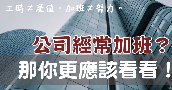 「工時」不等於「產值」,「加班」不等於「努力」,你待的公司「經常加班」嗎?那你更應該來看看這篇文!