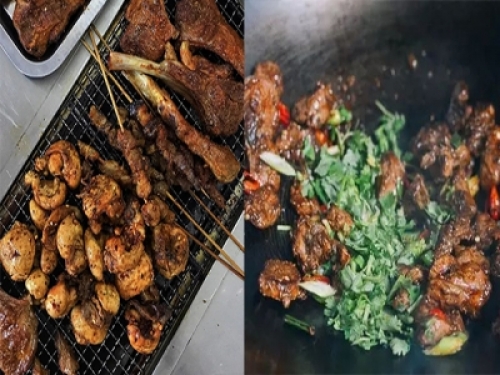 熟肉加香料醃漬的“羊肉旋鮓”,選肋排明火炙烤的“炙子骨頭”,整隻入坑爐裡烤熟的“坑羊”,切絲後用皮子包作卷狀、以油炸熟的“羊肉簽”、“羊頭簽”。
