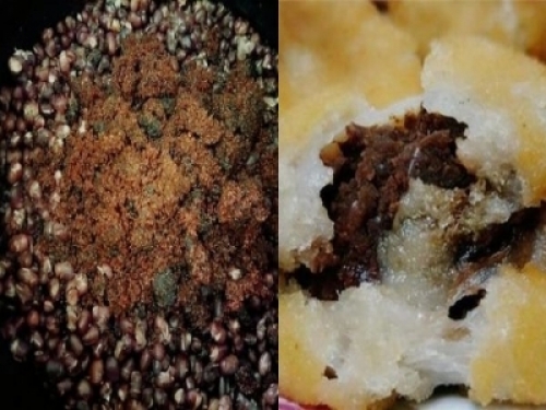 2.紅豆煮熟以後放入紅糖,攪拌均勻,然後用勺子凸面把紅豆壓碎,做成紅豆餡兒,也可以根據個人口味加入一些葡萄乾、芝麻、枸杞、紅棗之類的做成混合的紅豆餡兒。