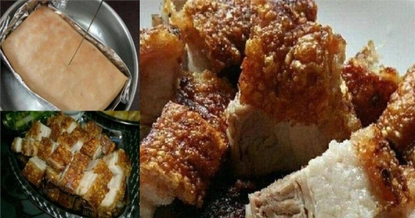 用錫紙包裹五花肉,皮朝上,然後用大針在豬皮上插上很多洞,再抹上白醋,然後用鹽蓋麵。